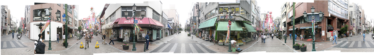 | 8月6日 七夕祭りの日に再挑戦してみた。今回は交差点の真ん中に立って、撮ってみた。画面右端に青い洋服を着た方がいらっしゃいますが、その方の歩みに合わせて撮り始めた。時間の流れも映っているような気がする。 |