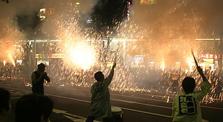 2006年08月 「町中の花火」:鍛冶町大通り旧松菱前での手筒花火