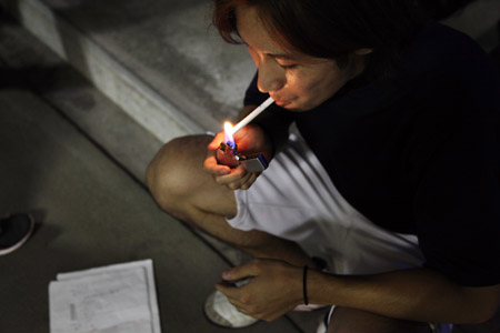 2006年08月 「町中の花火」:鍛冶町大通り旧松菱前での手筒花火